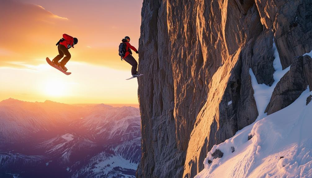 Media influence amplifies these feats, showcasing the blend of sport and adventure. When comparing extreme sports to conventional ones, remember they're not just about competition—they're about redefining what it means to be an athlete on your own terms.