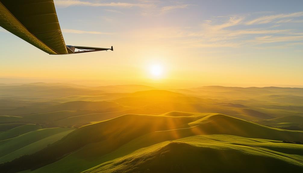 Thermals also significantly impact flight duration. These rising columns of warm air, often found under cumulus clouds, help extend your time in the sky. By circling within thermals, you can gain altitude and stay airborne longer. Experienced pilots can soar for up to 8 hours by effectively utilizing thermals.