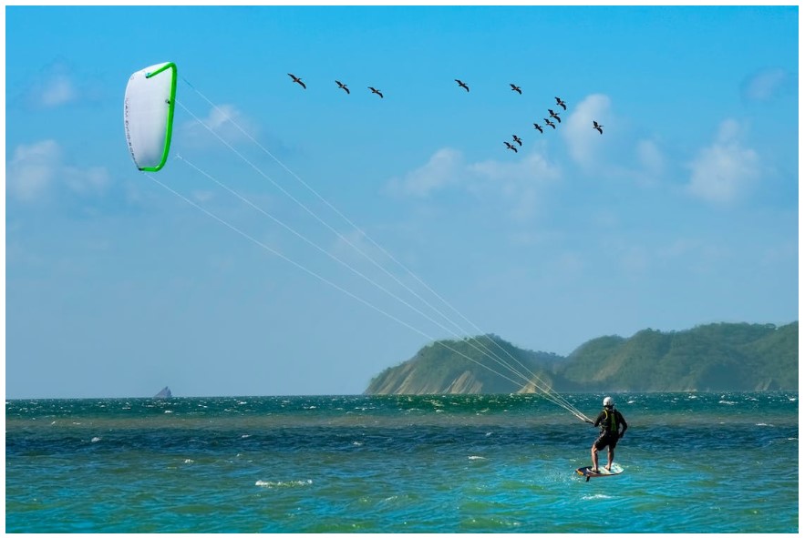 Kitesurfing is a sport that relies heavily on wind and water. The wind will propel your kite, and the water's surface will allow you to float effortlessly.