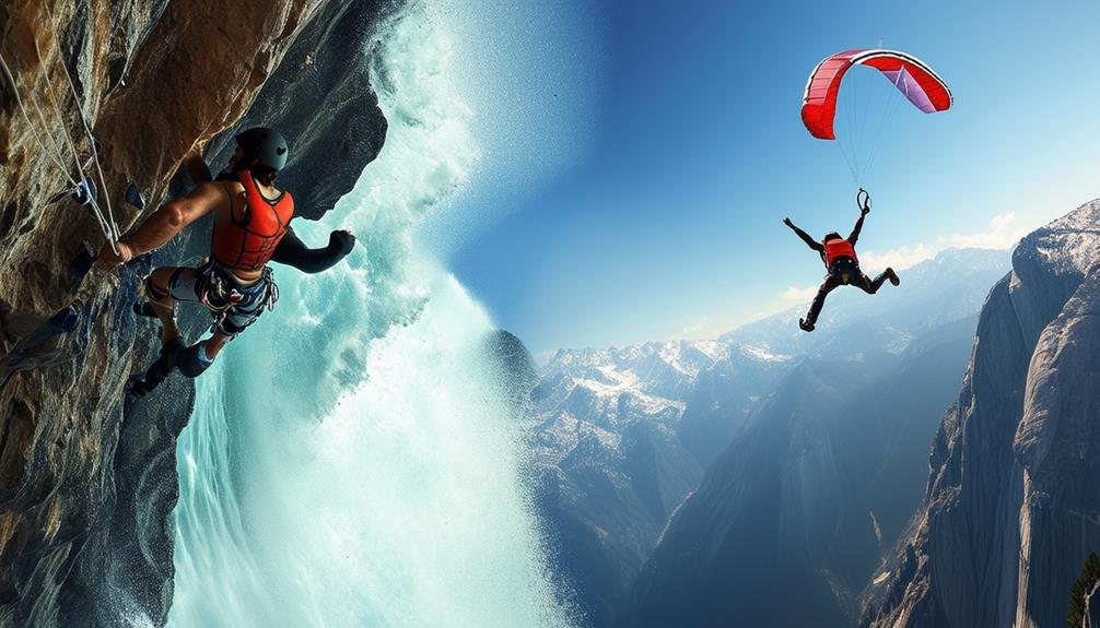 When you embark on wingsuit flying, you'll experience an unparalleled adrenaline rush. This high-risk activity requires precision and nerves of steel as you navigate through narrow gaps and rugged terrains.